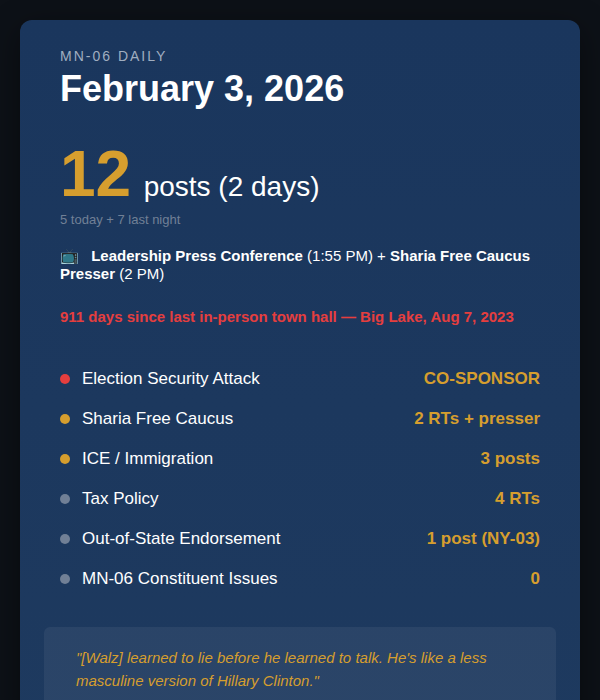 Subscribe to MN-06 Watch for daily accountability coverage of Rep. Tom Emmer.