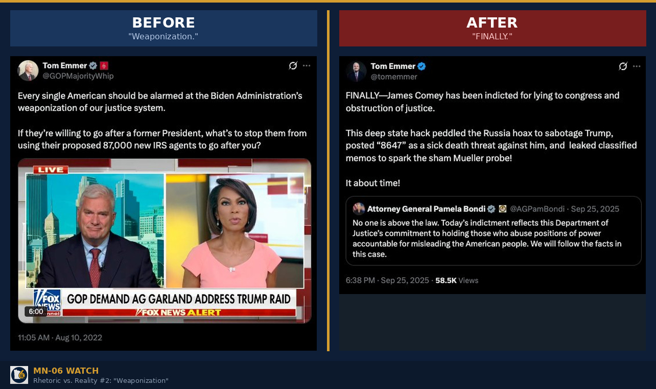 Same justice system. Same tools. Different targets. Different reaction from Tom Emmer.